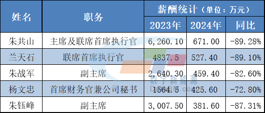 2024年,61位主产业链企业高管中薪酬最高的协鑫科技的主席及联系首席执行官朱共山,达671万元,同比下降了89.28%。