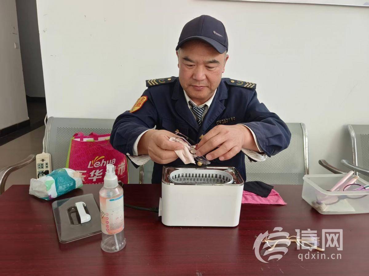管恩国为居民清洗眼镜。(来源:信网)